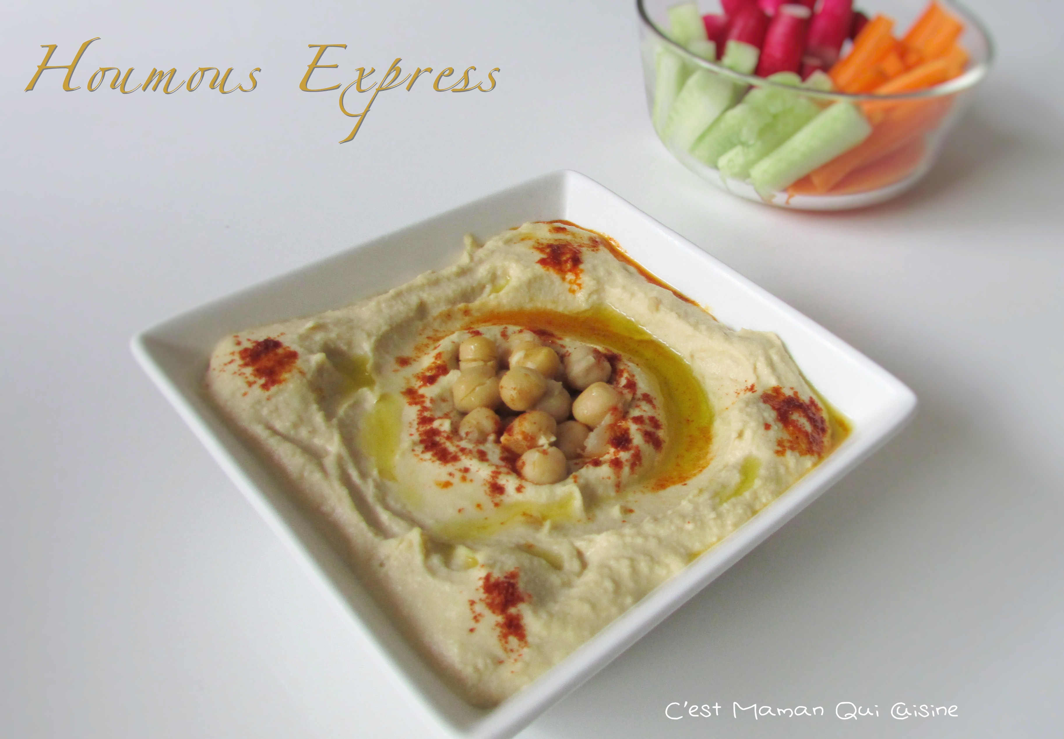 Voici donc la Recette du Houmous Express , il est très rapide à réaliser car on utilise des Pois Chiches en Conserve , mais vous pouvez bien-sur les remplacer par des pois chiches que vous aurez fait trempés la veille …